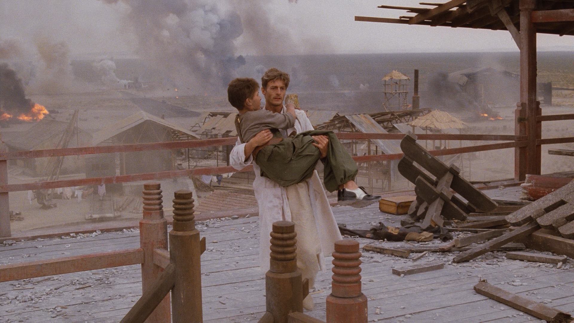But Basie’s story with Jim isn’t over yet. After surviving on his own, Jim comes upon air-dropped relief supplies from the Red Cross and manages to stave off starvation. But those pods, gifts from the heavens, attracts marauders – including the sudden return of Basie, who suggested this is where his life would take him, as a pirate on the Yangtze River. Jim, having connected before with a young Japanese pilot (Takatarô Kataoka) he saw through the fences of the internment camp, has serendipitously reconnected with Jim after what appears to be a failed kamikaze mission. The young men connect and share fruit, but their connection will be short lived. The pilot is shot and killed by one of Basie’s men who thinks he’s protecting Jim from being attacked. So not only has Basie betrayed Jim, attempted to sell him, and used him various times, he’s also responsible for killing a “friend.” An abusive father (figure) for sure.
