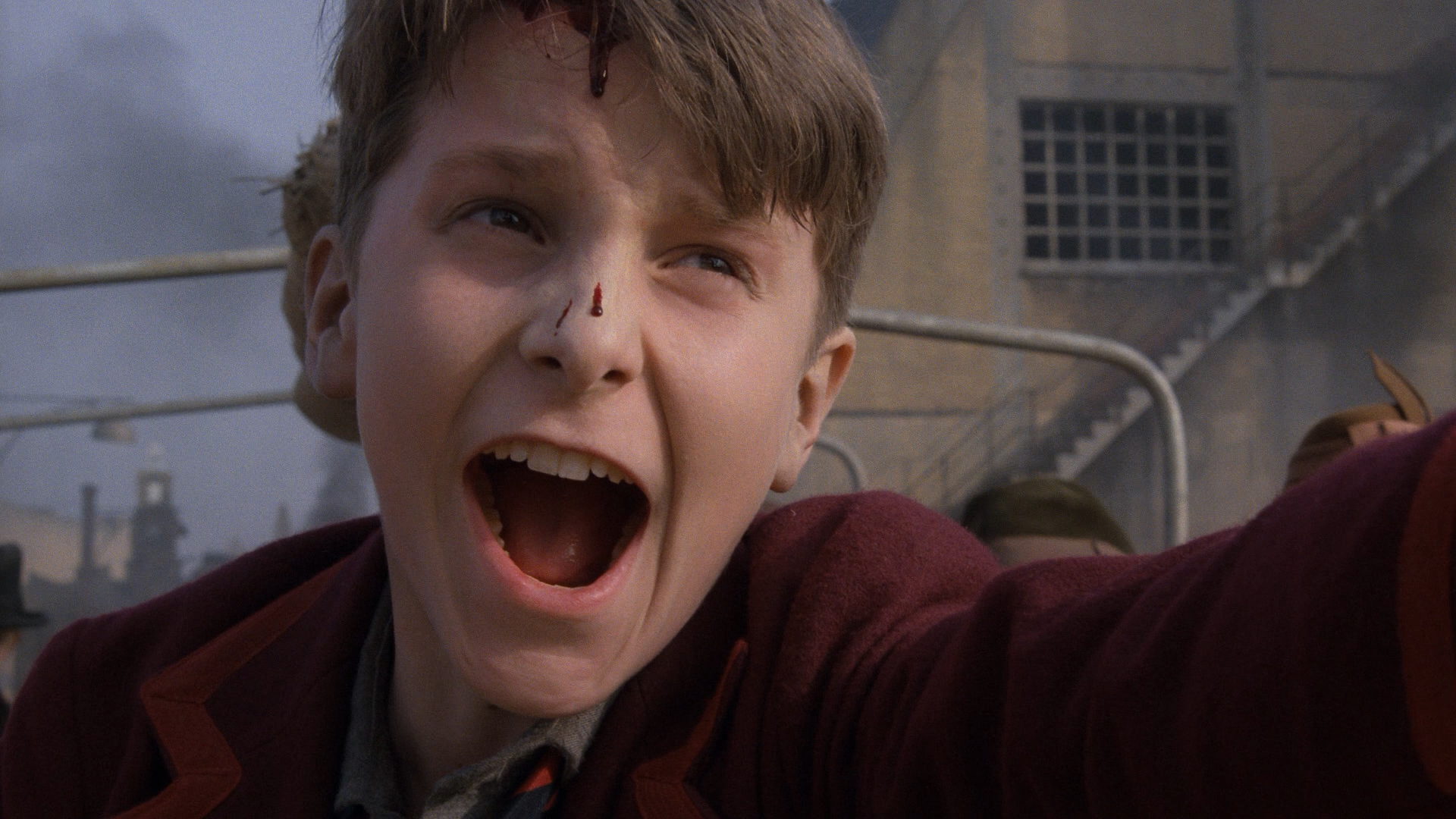 Jim (Christian Bale) has been separated from his family, survived on his own after the Japanese captured Shanghai at the onset of World War II, only to find himself with two American grifters, Frank (Joe Pantoliano) and Basie (John Malkovich) who don’t appear to have his best interests at heart. They take the British boy in but then soon decide to sell him into slavery or some sort of bondage. He’s a semi-valuable commodity to them.